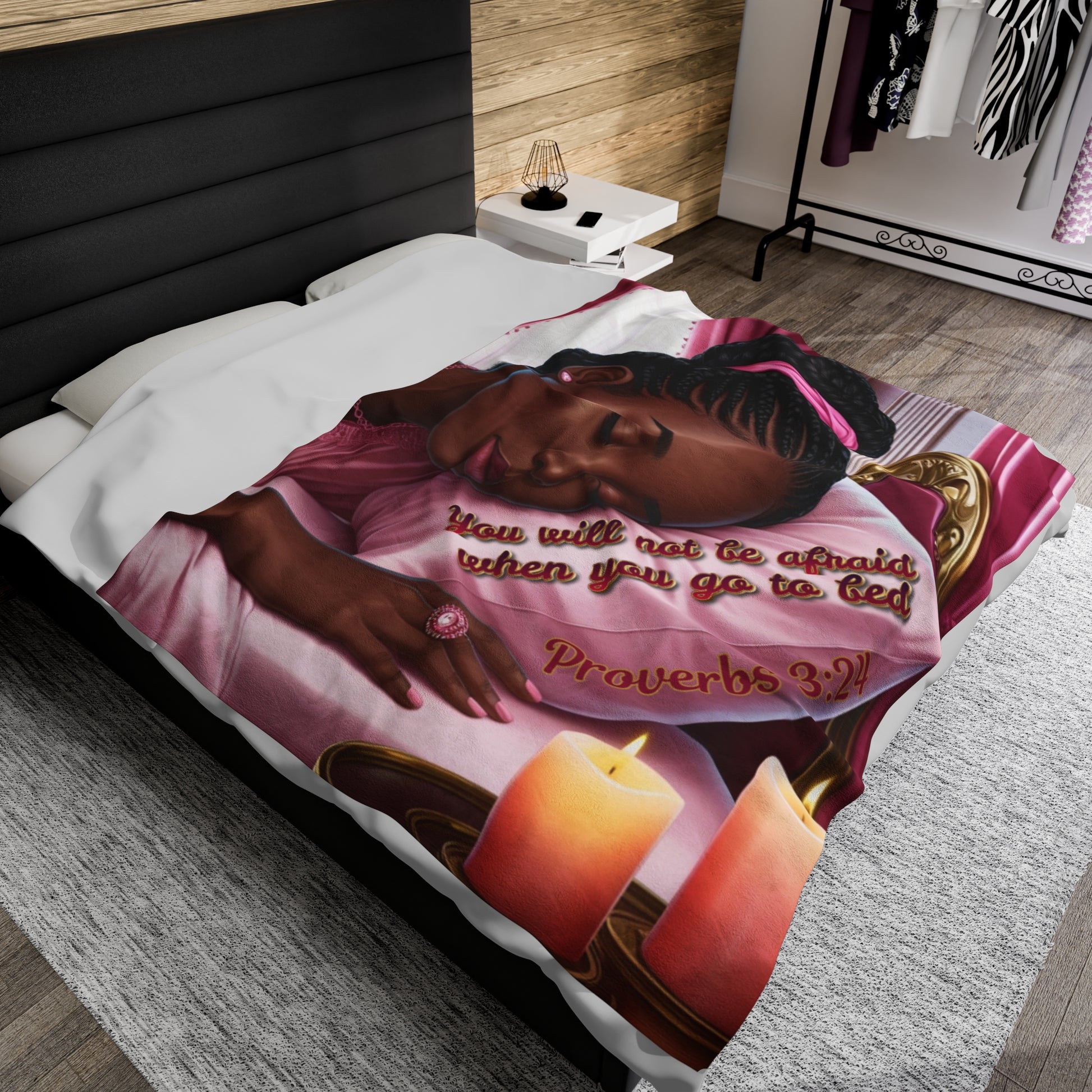 Inspirational African American Pink Velveteen Plush Blanket | Proverbs 3:24