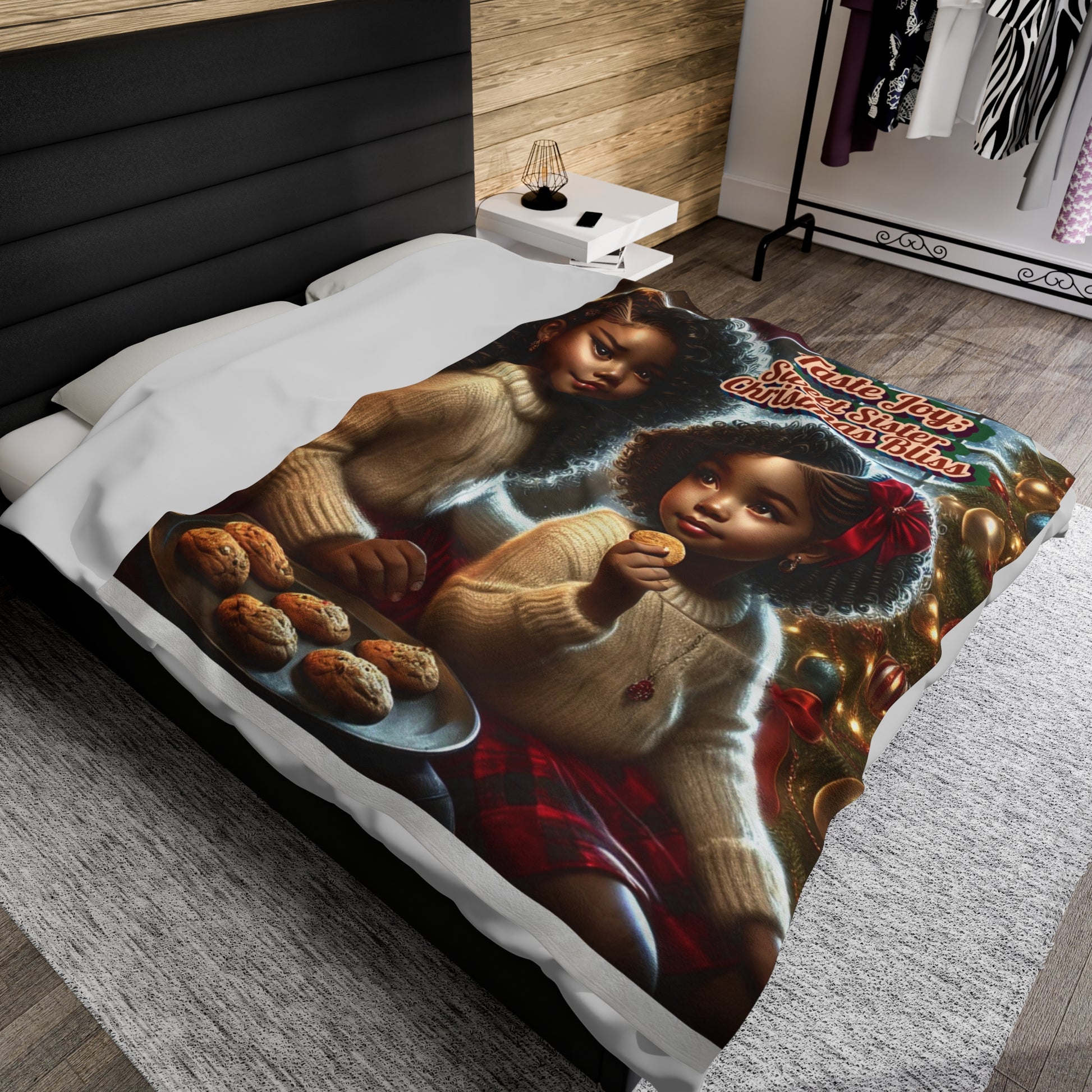 Wrap yourself in the warmth of sisterhood and holiday cheer with the Taste Joy: Sweet Sister Christmas Bliss Velveteen Plush Blanket. This luxurious, ultra-soft blanket captures the essence of Christmas with its heartfelt design featuring two sisters enjoying cookies together.